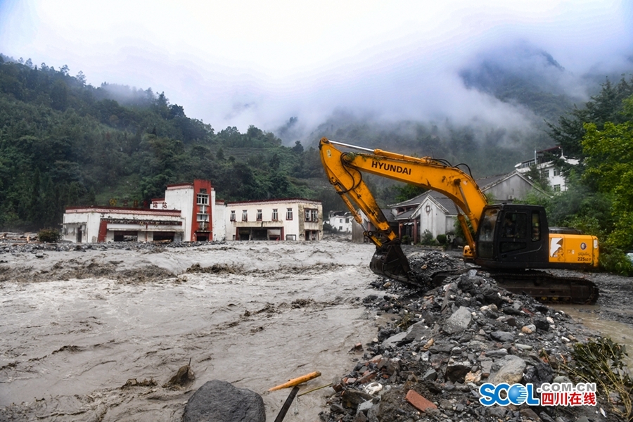 8月22日,省委副书记、省长尹力在汶川县三江镇查看灾情。