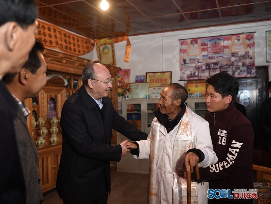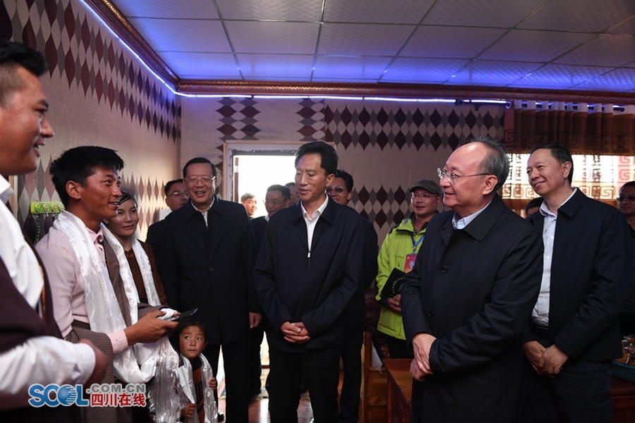 9月17日,石渠县色须镇日扎安置点,省委副书记、省长尹力走进易地扶贫搬迁群众家中,详细询问群众生产生活情况。