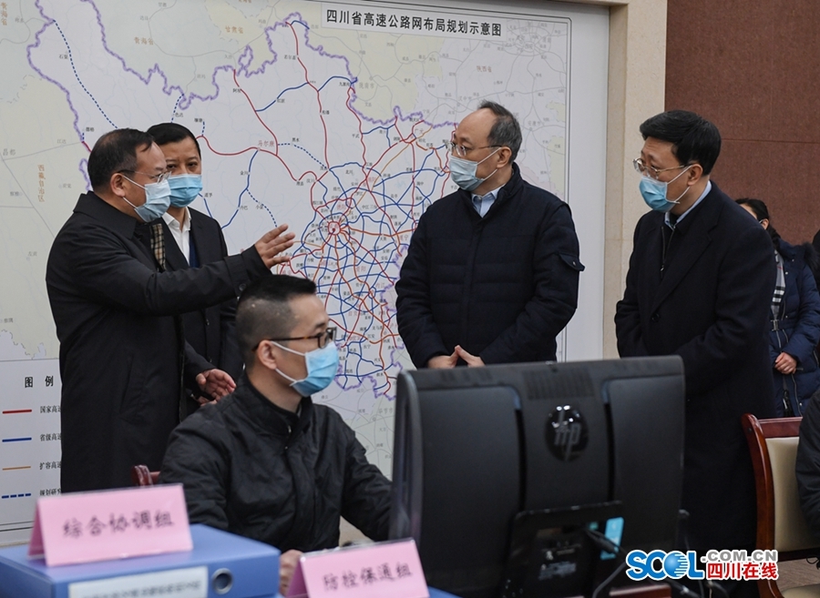四川在线消息(记者 胡彦殊 摄影 田为)2月17日,省委副书记、省长、省应对新冠肺炎疫情应急指挥部指挥长尹力前往交通运输厅调研疫情防控和交通运输保障工作,看望慰问交通运输战线干部职工,强调要深入贯彻落实党中央国务院和省委省政府决策部署,坚持全国一盘棋,全省工作统筹协调,实事求是、细致深入做好严防控和保畅通“两手抓”各项工作,坚决遏制疫情蔓延扩散,更好服务健康人员和生产生活物资安全有序流动,有力保障全省疫情防控和企业复工复产、重大项目建设等重点工作推进。