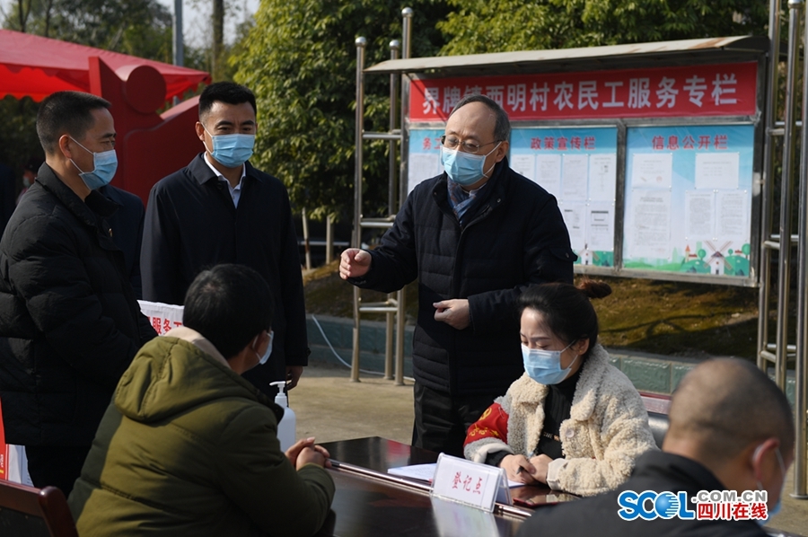 尹力在绵阳市安州区界牌镇西明村,详细了解农村地区疫情防控、春耕生产、农民工就业、外出务工人员健康申报证明服务工作。