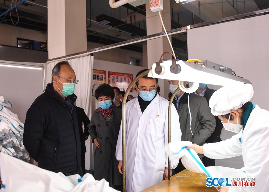 尹力前往际华三五三六实业有限公司,调研防护服等疫情防控物资生产情况。他说,医疗防护物资是打赢疫情防控阻击战的重要保障,企业要开足马力加紧生产,同时要坚持以产品质量为生命线,强化技术装备创新,优化生产工艺流程,保证产品质量安全可靠,相关部门要组织专家加强技术指导,地方要强化要素保障,帮助企业解决生产遇到的具体困难问题,努力为全省乃至全国疫情防控作贡献。在京东方光电科技有限公司和四川九洲电器集团,尹力详细了解企业落实疫情防控措施和复工复产情况,鼓励企业根据疫情发展和整体防控要求,不断完善和优化管理工作,把防控措施做得更精准更到位,让企业运行更高效成本更低。地方政府要突出抓好稳就业、稳企业的工作,组织身体健康的群众及时返岗就业,更加主动服务企业复工复产。他强调,高科技企业要在疫情防控中发挥科技优势作用,要对标社会管理需要和群众生活需求,组织研发生产对路产品,增强市场竞争力和占有率。