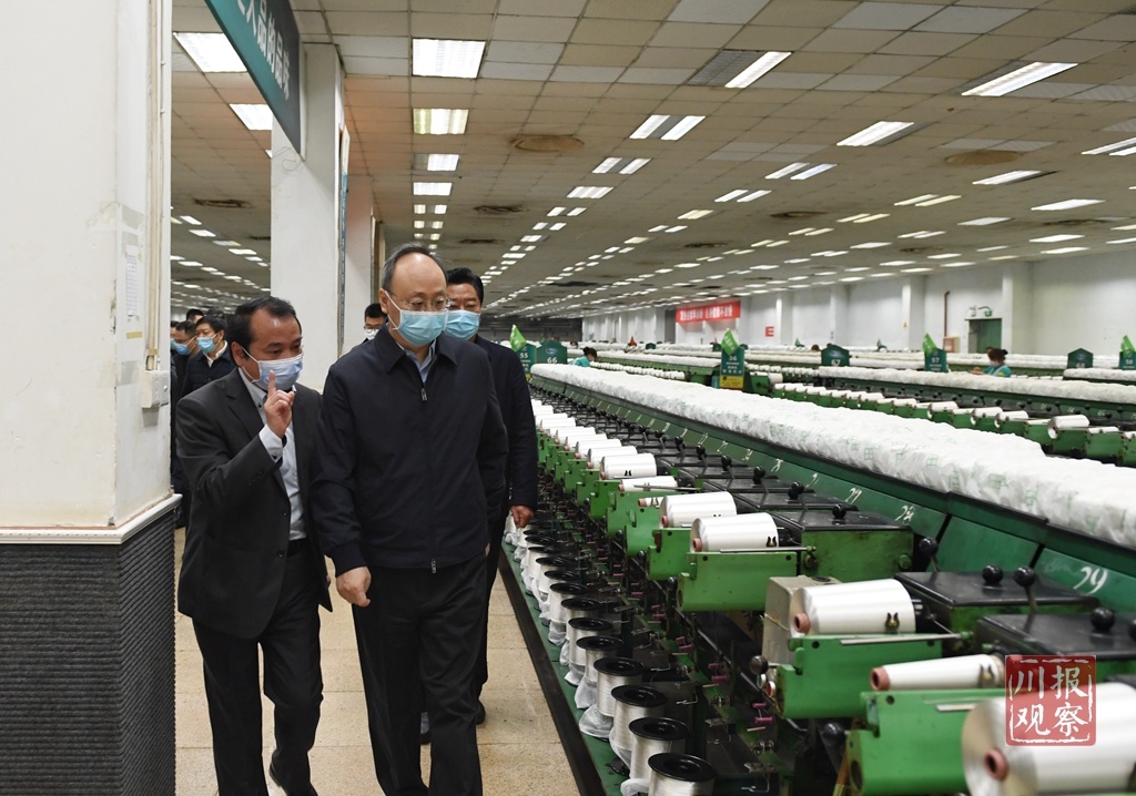 在屏山县浙川纺织产业扶贫协作示范园内的天之华纺织科技有限公司,尹力查看了解企业落实疫情防控的具体措施,生产经营以及助推扶贫脱贫情况,鼓励企业抓细抓实疫情防控措施,抓紧抓实生产工作,尽快达产达效,为巩固贫困群众脱贫成果、促进贫困地区加快发展多做贡献。地方政府要珍惜用好扶贫支持,积极推动扶贫龙头企业、扶贫车间尽快复工复产,帮助身体健康的贫困劳动力有序返岗就业,对受疫情影响的贫困户要落实针对性帮扶措施,确保贫困群众稳定脱贫、奔康致富。