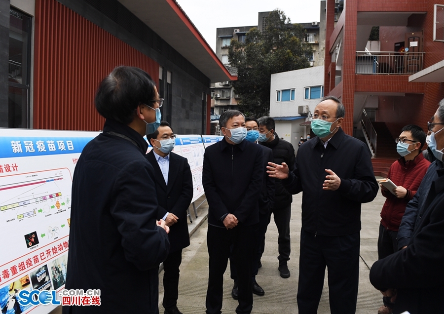 尹力详细了解了疫苗研制流程和进展情况,对四川大学生物治疗国家重点实验室前期工作取得的阶段性成果给予肯定。他指出,疫苗对传染病防控至关重要,是战胜病毒传染病最重要的武器。疫苗研制工作必须尊重科学规律,产品必须做到安全、有效和质量稳定可靠。四川大学研发的新冠肺炎疫苗动物试验取得良好效果,已进入国家科技部重点项目。随着我国新型冠状病毒肺炎病例快速减少,后期疫苗临床试验可能会遇到困难,省委省政府将给予大力支持。实验室要强化协同创新,进一步加强同国家有关部委和机构的沟通,加强同有关国家特别是疫情高发国家的科研合作,加强同产业链上下游企业的有机衔接,加快研发和生产进程,争取早日投入临床试验和上市使用,在全球战“疫”中发挥积极作用。四川大学要发挥多学科交叉融合研究优势,通过战“疫”掌握更多具有自主知识产权的核心科技,生产出更多填补空白的产品,为提升我省疫情防控综合能力作出更大贡献。相关部门要为科研团队提供深入细致的服务,对重点难点问题逐一帮助解决。