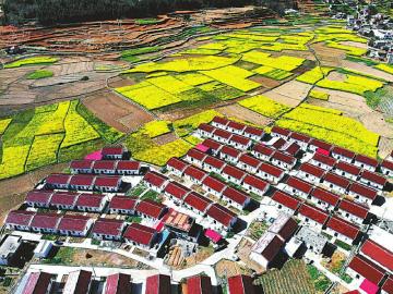 近日,在凉山州越西县梅花乡巴姑村,大片金灿灿的油菜花与彝家新寨“旌阳新村”相辉映,构成一幅美丽的乡村画卷。唐渝川摄(视觉四川)