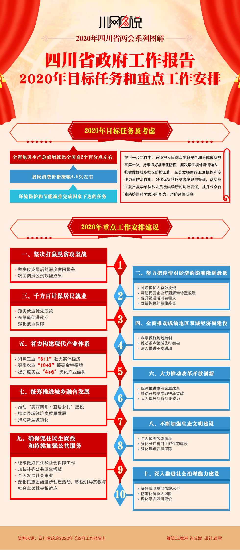 【川网图说】四川省政府工作报告之2020年目标任务和重点工作安排 来源:四川新闻网 发布时间:2020-05-09 13:16:46 浏览次数: 次 【字体:小 大】 来源: 四川新闻网 终审:何晓波 分享到: 关闭本页 【打印正文】