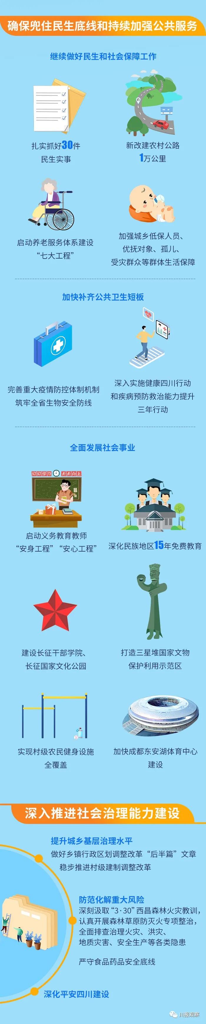 尹力在报告中提出今年政府工作的总体要求:以习近平新时代中国特色社会主义思想为指导,增强“四个意识”、坚定“四个自信”、做到“两个维护”,全面落实习近平总书记对四川工作系列重要指示精神,按照省委决策部署,统筹推进疫情防控和经济社会发展,坚持稳中求进工作总基调,坚持新发展理念,坚持以供给侧结构性改革为主线,坚持以改革开放为动力推动高质量发展,扎实做好“六稳”工作,全面落实“六保”任务,大力推动成渝地区双城经济圈建设,深入实施“一干多支、五区协同”“四向拓展、全域开放”,迎难而上、共克时艰,确保打赢脱贫攻坚战,确保实现全面建成小康社会的目标任务。尹力表示,考虑到新冠肺炎疫情影响广泛深远和存在较大的不确定性,根据多年来我省经济社会发展与全国走势基本一致的情况,报告提出今年全省经济社会发展主要预期目标:今年全省地区生产总值增速比全国高2个百分点左右,居民消费价格涨幅4.5%左右,环境保护和节能减排完成国家下达的目标任务。