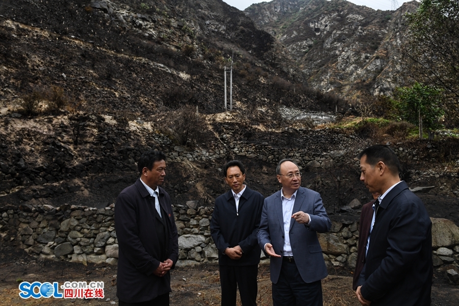 5月16日,省委副书记、省长尹力在康定市姑咱镇若吉村,实地查看“5·9”草原火灾现场,了解火灾发生原因和处置情况。