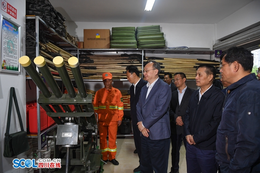 尹力在泸定县森林草原专业防灭火队伍营地看望防灭火队员,调研队伍建设、物资器材储备和基础设施建设情况。