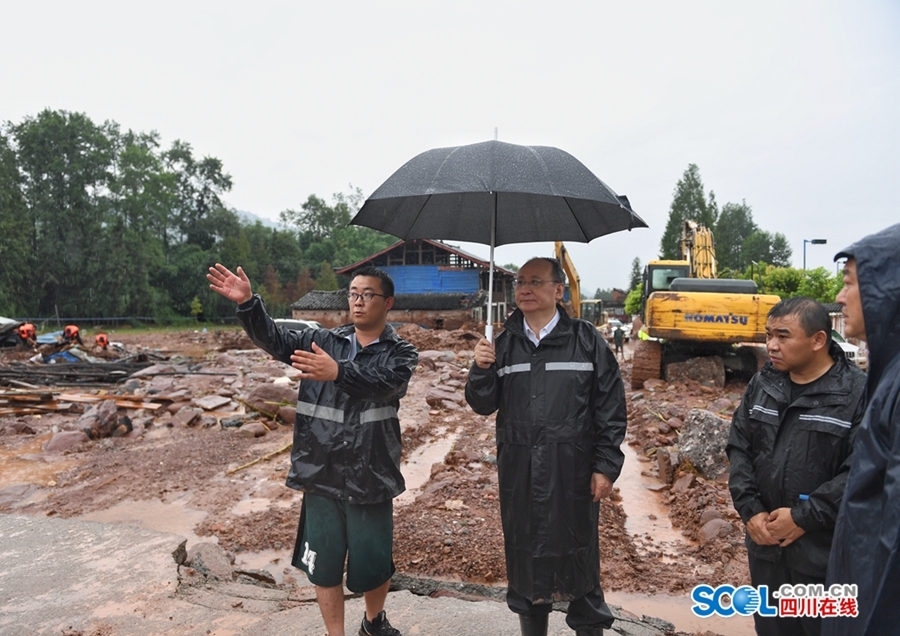 8月11日,省委副书记、省长尹力在芦山县龙门镇王家村实地查看灾情。