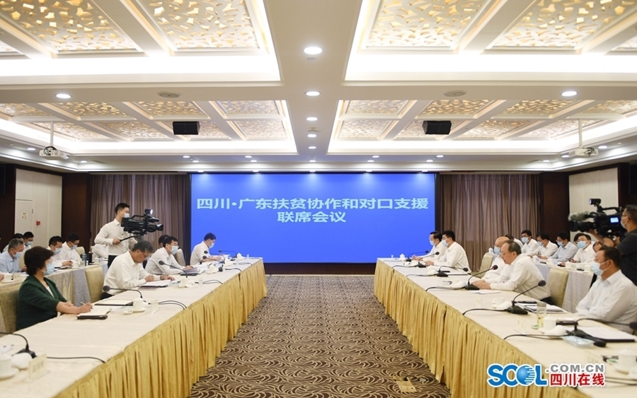 联席会议上,尹力代表四川省委省政府向广东省委省政府及社会各界多年来对四川真金白银投入、真心实意付出、真抓实干帮扶表示感谢。他说,目前,四川已进入脱贫攻坚收官阶段,全省7个未摘帽的深度贫困县全部集中在凉山。我们牢记习近平总书记嘱托,正集中兵力全面冲刺,接下来将进一步聚焦重点地区重点人群,针对“三保障”方面存在的薄弱环节,加快查漏补缺,切实解决贫困群众饮水、住房、交通等方面的迫切问题,针对性做好疫情和自然灾害防控,助力挂牌县、挂牌村按期退出,贫困人口全部脱贫,坚决打赢脱贫攻坚收官战,确保与全国同步全面建成小康社会。我们将努力推动建立健全两省长效合作机制,强化成渝地区双城经济圈建设与粤港澳大湾区建设战略协同联动,深化劳务协作,共建西部陆海新通道,促进互利共赢合作再上新台阶。广东在区域协同、产业发展、改革开放等方面的先进做法和宝贵经验全国领先,四川将认真学习借鉴,努力把握大势、抓住机遇、苦干实干,加快在西部形成高质量发展的重要增长极。