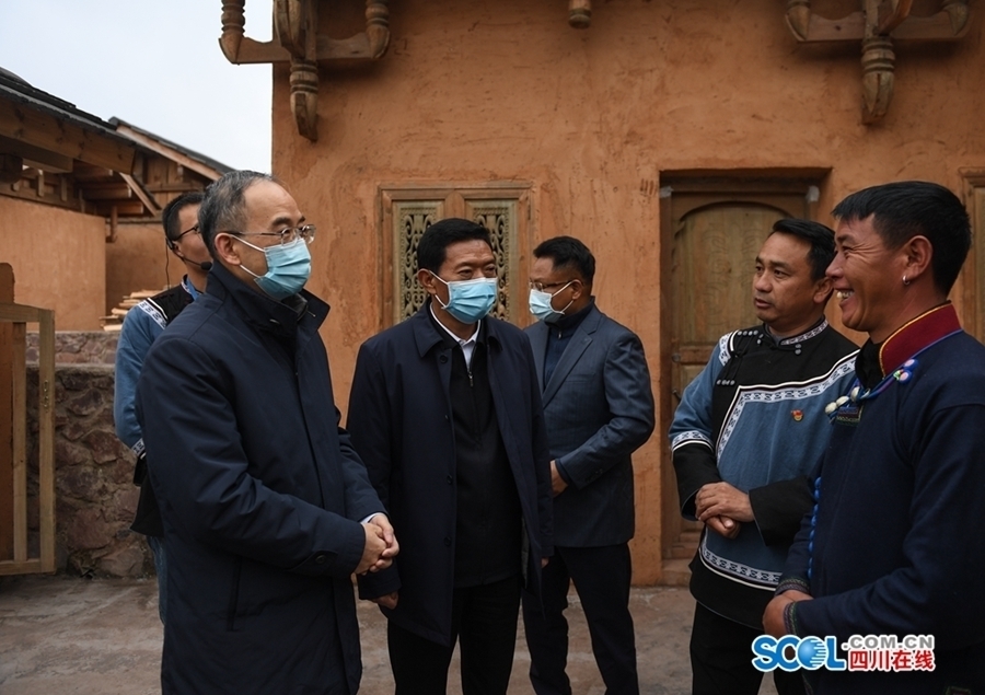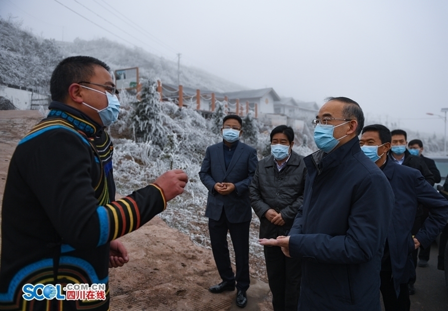 黄强前往昭觉县解放乡火普村、三岔河乡三河村,调研发展特色产业巩固提升脱贫攻坚成效情况,实地察看三河村旧址原貌、易地扶贫搬迁安置新址风貌及村史馆,并走访慰问了吉地尔子、吉好也求等彝族贫困群众,要求立足特色优势发展壮大种养殖产业,加强乡村旅游规划和配套设施建设,带动更多农民群众持续增收,用群众喜闻乐见的形式宣讲好五中全会和省委八次全会精神,加强森林防火、健康卫生等知识宣传,并勉励贫困群众在脱贫摘帽后接续奋斗,日子越过越好。在布拖县依撒社区和拉达乡大棚蔬菜基地,黄强详细了解了易地扶贫搬迁等工作开展和发展现代农业助农增收情况,要求注重细节,做好安置小区基础设施和功能配套提升完善工作,解决好群众冬季取暖和用水等问题,持续提升社区治理水平,做好后续帮扶,确保搬得出后稳得住、能致富。