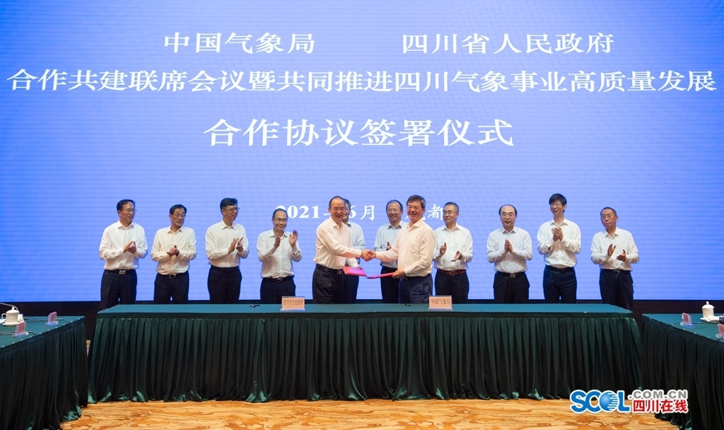 6月1日,省政府与中国气象局合作共建联席会议暨共同推进四川气象事业高质量发展合作协议签署仪式在成都举行。省委书记彭清华会见中国气象局局长庄国泰一行,双方围绕加强气象基础设施建设、全面提升气象监测预报预警能力、共同推进四川气象事业高质量发展等交换了意见。省委副书记、省长黄强和庄国泰出席会议并分别代表双方签约。