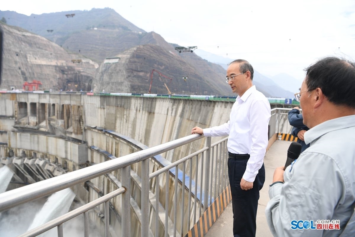 四川在线消息(记者 李淼 摄影 田为)6月12日,省委副书记、省长黄强赴位于四川省宁南县和云南省巧家县交界处的白鹤滩水电站实地调研,强调要坚定贯彻落实习近平总书记重要指示精神,心怀“国之大者”,全力以赴,做实做细各项服务保障工作,为今年7月前首批机组如期投产发电创造良好环境。