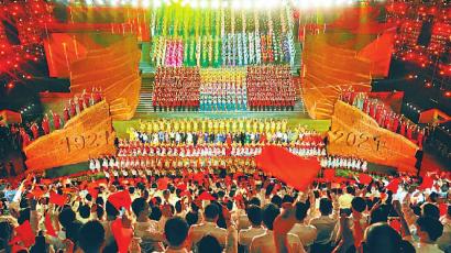 百年峥嵘岁月,百年辉煌历程,最美的歌声唱给伟大的中国共产党。演出在“开天辟地”篇章中拉开帷幕,通过情景演唱、舞蹈、朗诵、合唱等方式,讲述了我们党从南湖红船起航,怀揣初心使命,历经28年血与火,铁流奔涌二万五千里,打败日本帝国主义,推翻国民党反动统治,建立起中华人民共和国的波澜壮阔征程。“火红年代”篇章反映的是新中国成立至改革开放前的历史,在那个激情燃烧的年代,党带领全国人民自力更生、艰苦奋斗,创造了一个个“当惊世界殊”的奇迹;“春潮激荡”篇章讲述了改革开放时期党的历史,从“春天的故事”到“1997”,从“在希望的田野上”到“在灿烂的阳光下”,演员们用艺术形式生动展现了中国从赶上时代到引领时代的伟大跨越;“走向复兴”篇章反映的是,党的十八大以来,以习近平同志为核心的党中央推动党和国家事业取得历史性成就、发生历史性变革,巴蜀大地也在新的征程上实现翻天覆地变化,徐徐展开的治蜀兴川锦绣画卷,不断为新时代中国故事增光添彩。进入尾声环节,演员和全场观众齐声高唱《没有共产党就没有新中国》,深情表达巴蜀儿女对党的感恩感激和热爱赞美之情。