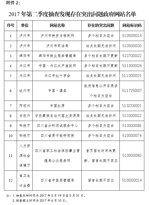 2.2017年第二季度抽查发现存在突出问题政府网站名单