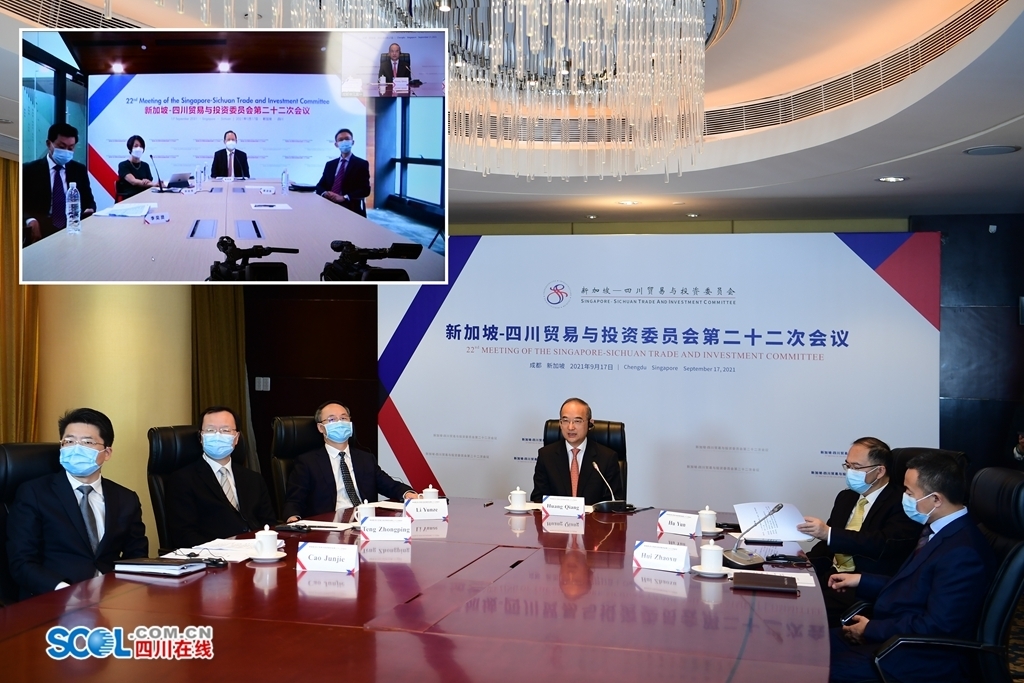 四川在线消息(记者 李淼 摄影 田为)9月17日,作为第十八届西博会主宾国活动,新加坡-四川贸易与投资委员会第二十二次会议通过视频连线方式举行。省委副书记、省长黄强,新加坡人力部长兼贸工部第二部长陈诗龙分别在四川和新加坡会场出席会议并致辞。