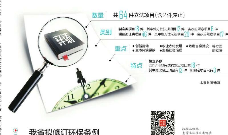 近日,记者从省政府法制办获悉,省政府2017年立法计划已出炉,共有64件立法项目(含2件废止)列入其中。其中,颇受关注的四川省民用无人驾驶航空器飞行安全管理规定或入法。