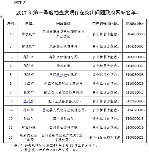2. 2017年第三季度抽查发现存在突出问题政府网站名单