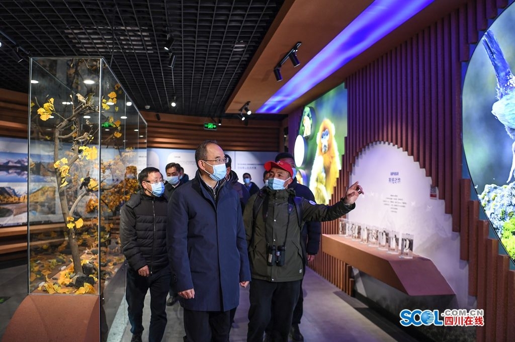 黄强还前往四姑娘山游客中心参观户外博物馆,深入双桥沟实地察看沟内丰富多样的冬季旅游资源和户外运动爱好者攀冰运动开展情况,并到四姑娘山科普教育基地了解保护区地质地史、生物多样性保护等情况。他要求,要加快完善旅游基础设施配套,在开发中尽量减少人工痕迹、保持原生态,大力推动户外运动全产业链发展,探索建立保护区工作人员参与保护和旅游收益分配激励机制。