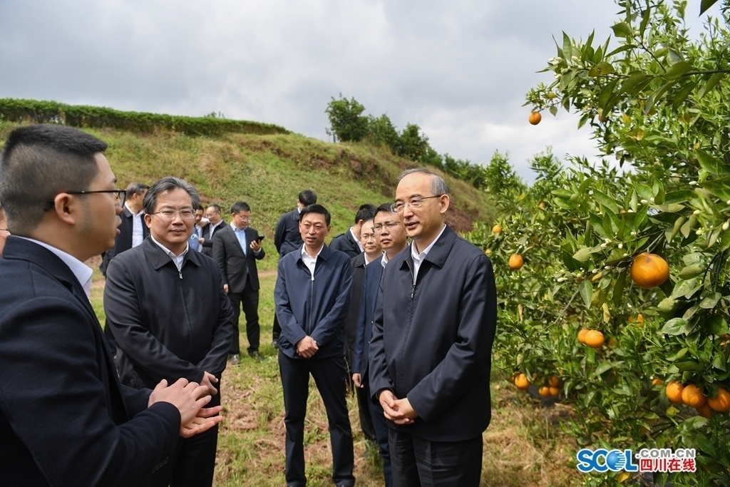 3月22日,黄强在富顺县狮市镇马安村,实地查看晚熟柑橘生产情况。