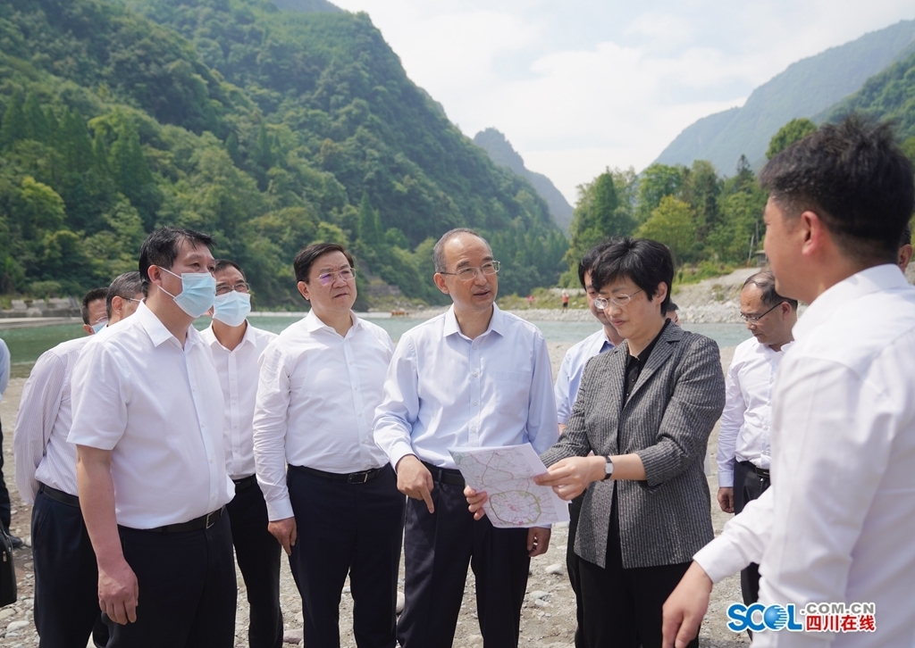 黄强在都江堰市龙池镇白沙河虹口段,调研景区开漂前安全检查和当前安全措施落实情况。