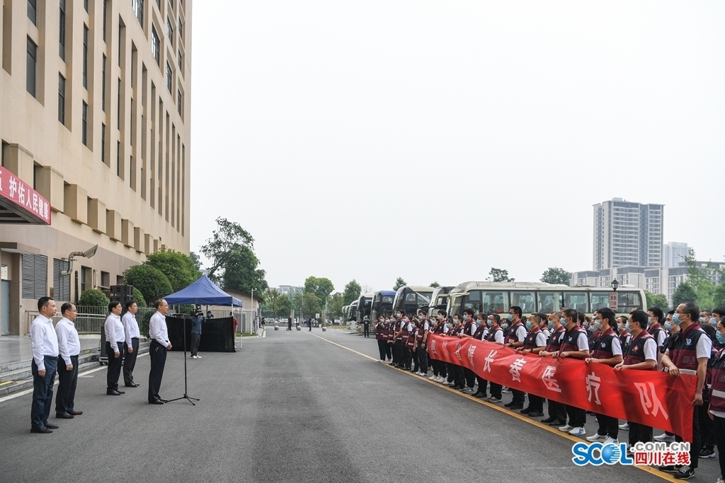 四川省援长春医疗队共有队员303人,来自于全省18家单位,在圆满完成任务后已返川并完成隔离观察。在成都市郫都区人民医院小广场,黄强说,在长春疫情肆虐的危急时刻,各位队员闻令而动、逆行出征,为长春打赢疫情防控攻坚战立下了汗马功劳,贡献了四川力量、展现了四川风采。希望大家继续发扬冲锋在前、甘于奉献的精神,在各自岗位上再立新功、再创佳绩。随后,队员们统一登车,黄强挥手向大家致意,目送队员们返程。黄强还前往郫都区人民医院儿科护士站,向护理工作者致以亲切问候,希望大家不断提高专业技能,为少年儿童提供更加优质的护理服务。