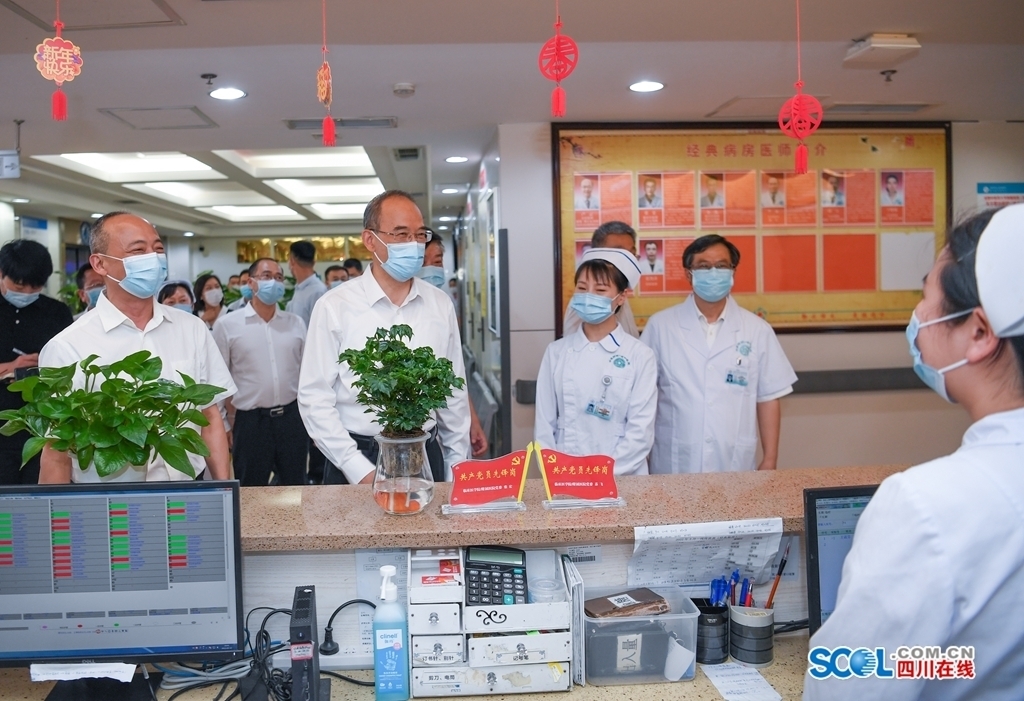 黄强还前往四川大学华西医院,看望慰问护理工作者代表。他说,华西医院是我国医疗界的“中流砥柱”,被网友誉为战疫“王炸天团”,在疾病预防、患者救治、应对公共卫生事件等方面作出了突出贡献,在抗疫中发挥了重要作用。希望肩负起“国家队”使命,勇攀高峰、精益求精,带动提升全省医疗服务水平,在抗疫关键时刻继续挺身出征。他还听取医院新冠肺炎病毒核酸快速自检技术介绍,察看相关产品,要求抢抓机遇,加快有关报批工作,积极开展试用,依托市场化力量,争取尽早实现量产。