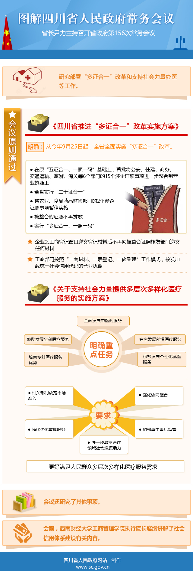 2017年9月18日,省委副书记、省长尹力主持召开省政府第156次常务会议,研究部署“多证合一”改革和支持社会力量办医等工作。