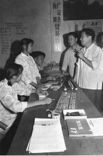 广汉县改革农村经济。图为时任县委书记常光南在向阳公社货栈了解物资交换情况(新华社供图)