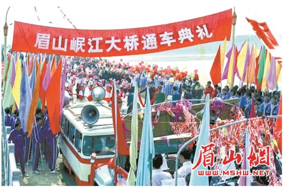 9月26日 四川省民办公助集资修建并征收过路费的空腹式预制板大桥——眉山岷江大桥剪彩通车。大桥全长723米、宽12米,总投资740万元,其中由单位和个人集资300余万元。
