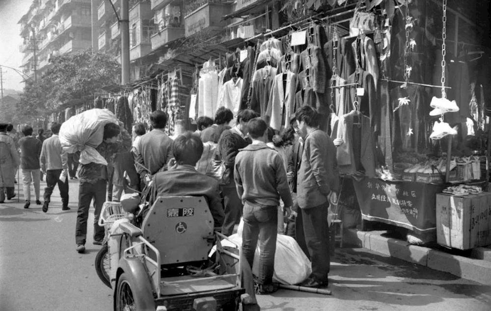 20世纪80年代以来,四川省经济改革和工农业生产的发展,极大地促进了市场活跃和繁荣。图为在成都街头营业的个体裁缝(新华社 供图)