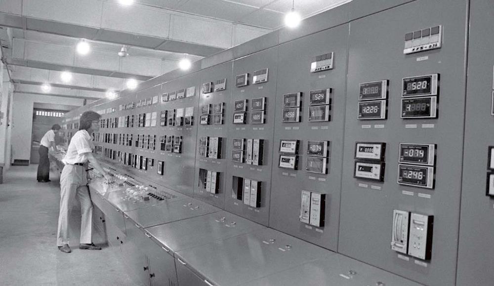 1992 年9 月,川东盐厂年产30 万吨真空制盐工程投入试生产。图为工程的自动控制系统(新华社 供图)