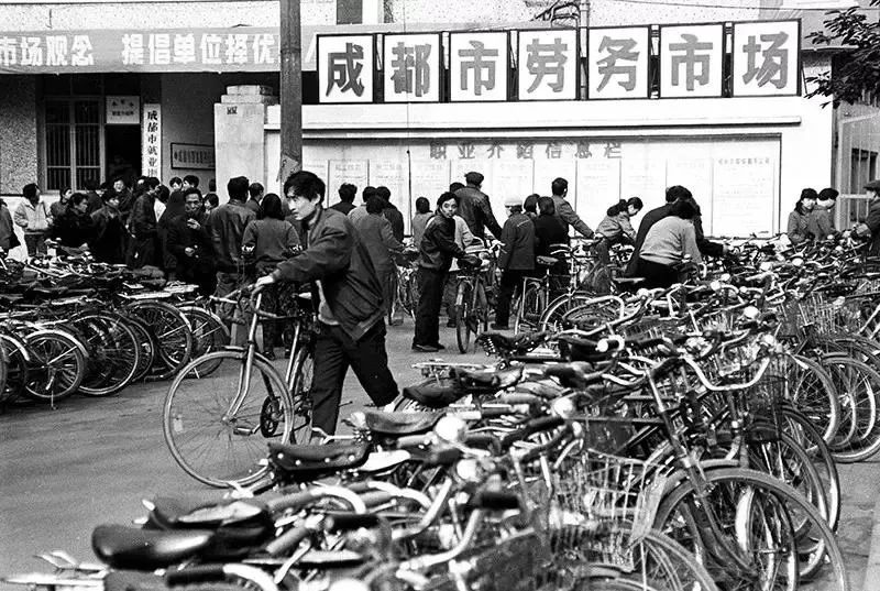 90年代初,成都市劳务市场(游支健摄,来源:中国摄影家协会网)