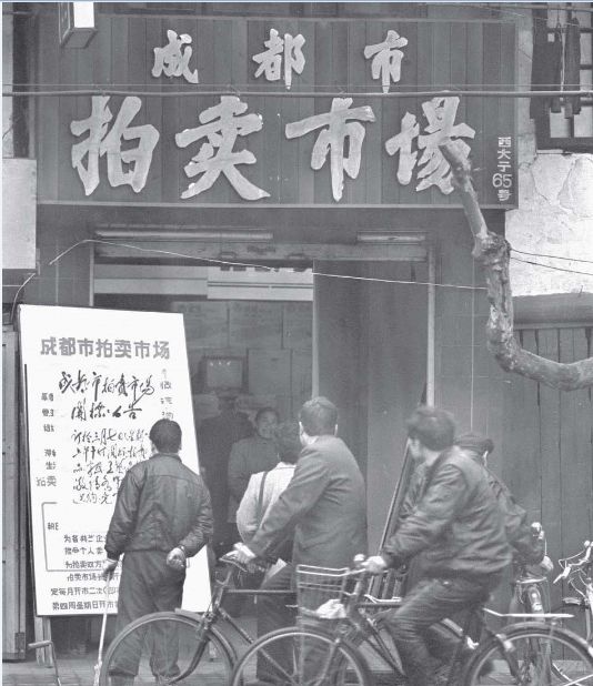 1990 年5 月5 日,西南地区首家拍卖市场——成都市拍卖市场开槌。图为成都市拍卖市场大门(新华社 供图)