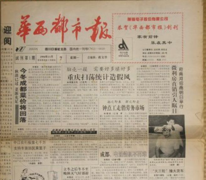 1994年11月7日,《华西都市报》试刊。图为试刊号(图片来自网络)