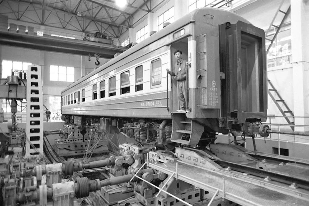 1995年11月2日,中国第一座牵引动力国家重点实验室在西南交通大学建成并通过国家级验收。图为实验室内滚动实验台上的线路动力试验车(新华社 供图)