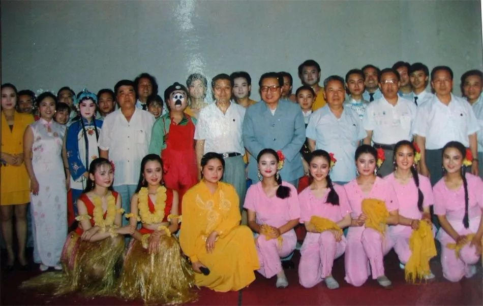 1993年,时任全国人大委员长乔石在南充观看文艺演出后与演员合影(图片来源:海外网)