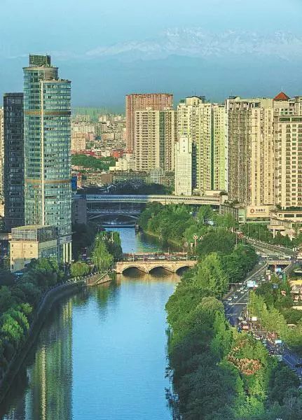 2018年10月10日晨,沿锦江向西能清楚看到雪山,再现“窗含西岭千秋雪,门泊东吴万里船”美景(图片来源:2018年11月5日《四川日报》)