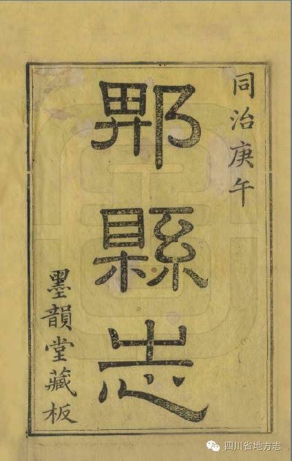 清陈庆熙修,高升之等纂。陈庆熙,浙江山阴(今绍兴)人,同治四年(1865)任郫县知县。高升之,郫县人,优贡生。陈庆熙莅任五年,政事稍暇,邀县人士议修邑乘,聘高升之与县举人邱锡璋为总纂,另派十余人分行采访,于同治九年编纂成书梓行。