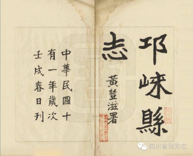 刘夐等修,宁缃等纂。刘夐,字季刚,四川合江人,清末附生,民国七年(1918)任邛崃县知事。宁缃,字云若,一字荣若,邛崃人。光绪十四年(1888)举人,后署丰润县,补为丰润知县,官至直隶祁州(今安国)知州,入民国卒,著有《魏文靖公史传考略》、《蘦芗诗存》、《蘦芗草堂文集》等,另有《周官联事表》、《邛州前贤史传辑略》、《邛州迤南山川坼界考订》,皆不存。