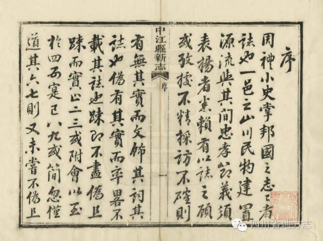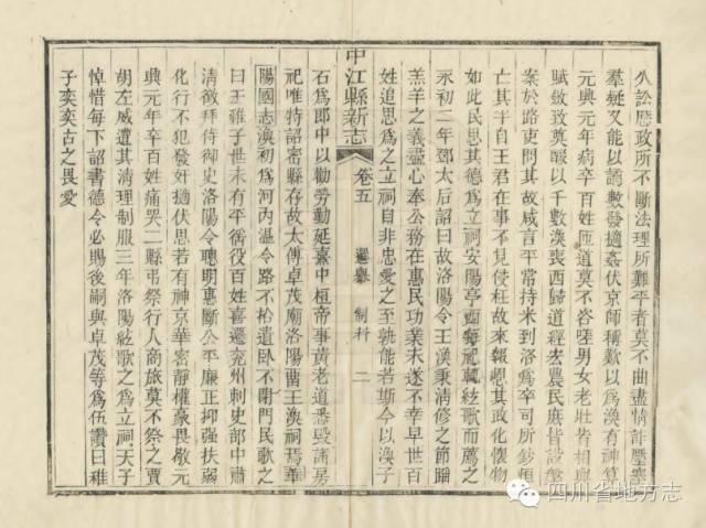 杨霈《序》曰“《中江县志》始修于康熙五十四年,再修于乾隆五十二年。厥后日渐月盛,事迹愈多。至嘉庆壬申重加修辑,迄今又二十八年。其中有旧志已载而今非其实者;亦有旧志舛错,今尤宜核其实者。而此外之阙如者,固无论矣。……己亥初夏,余权是篆,亟谋重修。维时宿案充斥,萑苻啸聚,夙夜未遑。弥月后,幸案牍清,奸宄靖,余弗敢因循……复延隆昌范百崇孝廉,同副斋王君鉴塘、大令黄君毅庵开局纂修。适同年李君容海以忧居里,因得藉以总其成。其体例凡八:首地理,见封守之重焉;次建置,见举措之宜焉;次田赋,见征徭之制焉;次职官,见司牧之责焉;次选举,见人材之盛焉;次士女,见教化之行焉;次杂记,见庶征之备焉;次拾遗,见先型之具在焉。若此者,凡以志其实也。实之多,不厌其详;实之寡,不嫌其略。将使莅斯土者,睹是编以行实政,而有以为张弛之资;生斯土者,奉是编以励实修,而有以为观感之助。是则余重修之本意也。计斯举始于秋,成于季冬,为时仅四阅月。开局伊始,余又行役马边,未暇刊订,是以征事、实考、遗文,赖同年李君之力居多。”盖霈莅任斯土,于政事之暇查阅旧乘,决心续修,特聘泰衡和邑中士绅共襄其事。设局未几,福源遂请其审稿并厘订,于道光十九年(1839)得以成书刊行。