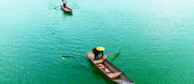 牛倌儿划着小船,陪伴渡江的牛儿(彭圣洲 摄)