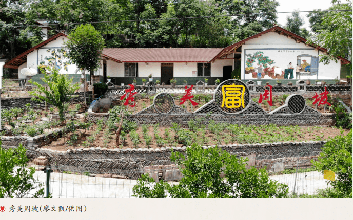 自乡村振兴战略实施以来,周坡镇着力打好“生态宜居”牌。保留乡土原味,建设生态宜居的美丽乡村,是周坡镇在乡村振兴中脱颖而出的法宝。周坡镇牢牢把握“留得住乡愁,记得住情怀”的田园乡村元素,在周坡村打造示范村。该村以柑橘产业为龙头,带动生态发展。随着村民的钱袋子鼓起来,人们更加向往诗画般的生活,于是,干净整洁的乡村环境、如诗如画的田园风光、宁静闲适的田园生活,在村民们的共同努力下,成为现实,村民们心里乐开了花,大家对稳步推进乡村振兴工作充满信心。自此,周坡镇创新提出“五大发展模式”,创建“整体统一建造风格、特色柑橘产业、红色文化产业、农耕文化产业”为一体的乡村振兴“地标”点,将周坡村打造成“留得住乡愁,记得住情怀”的田园乡村。山上发展林业,山间种植蔬菜,田间养殖生态鱼,形成以蔬菜、渔业、名优树木、水果、畜牧等种养业为基础的田园经济、都市农业,其中七彩蔬菜园、乡野渔乐园、林间驿站、观光亭、休闲走廊成为特色体系;香樟、桂花等 800多亩优质名贵苗木为旅游奠定良好基础,形成现代化农业综合开发和发展经济林果的理想基地,成为当地群众脱贫致富的重要产业。