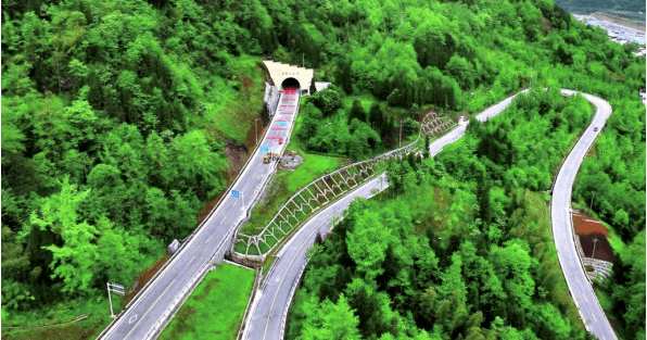 东南斜上西北,以香港特区政府援助四川灾区民生工程为契机,绵竹交通人面对因汶川“5·12”致使地质松动,加之绵竹处在板块与板块的结合地带 ,经常发生地震,尤其是每年5月至10月处于汛期,四处垮塌,泥石流频至。绵竹交通人转变思路,把握天气、地质特点,运用新科技,扭转劣势、攻坚克难,变天堑为通途,架飞虹于山巅,这就是从绵竹东南至西北贯通绵竹境内的德阿(绵茂)路,集民族交流、旅游观光、经济互促三者于一体,随着它的通行,将改变德阳与阿坝、绵竹与茂县“相邻不相通”的窘迫局面。一方面,香港援建段于2016年12月22日全面完工,由香港发展局率港方工作组,按《港澳援建项目竣工验收办法》要求,对工程进行了验收;2019年3月19日通过了由德阳市交通局组织的绵茂公路港方援建段竣工验收,被评定为优良工程。另一方面,在建黑滩沟大桥至篮家岩隧道,该段在建隧道12座已贯通10座,2座正在掘进(东河二号隧道剩余90米,篮家岩隧道主洞剩余151米)。在建桥梁19座(9座的主体工程已完成,另10座均在施工中)。