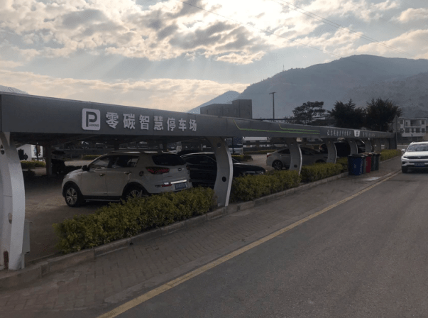 村里投用的太阳能智慧光伏停车场,让汽车有了遮荫地,不仅可满足新能源车辆的充电需求,又可将富余电力为村里供能。村里还设置了BIPV雨水收集系统,收集雨水用于村里田园花海的喷灌。