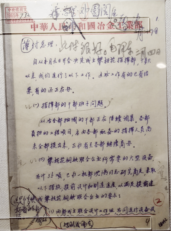 1965年3月4日,毛泽东主席在冶金工业部报告上作出批示(雨涵摄于攀枝花中国三线建设博物馆,图片来源:四川方志图库)