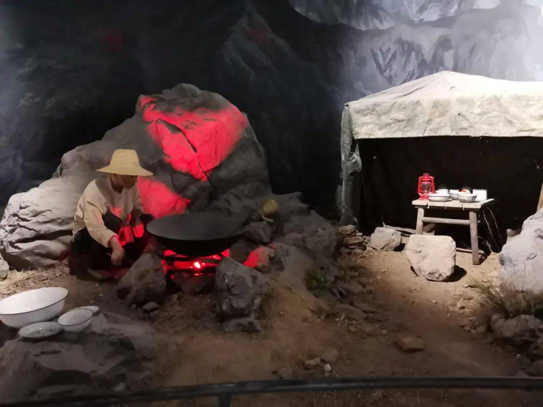 攀枝花建设实景雕塑:三个石头架口锅,帐篷搭在山窝窝(蓬州闲士摄于攀枝花中国三线建设博物馆,图片来源:四川方志图库)