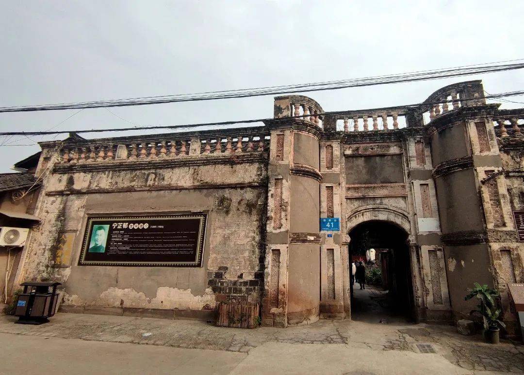 走在一个分岔的巷口,看见一群人在前面走,中间有一个大概是本地人说:“往这边走,这条街上有名堂可寻。”我随着人群一转,进了那条巷子。不远处一座典型的西式风格的建筑让我驻足——建新街41号。再细看旁边有介绍:“宁芷邨故居始建于清代,占地1970平米,现有天井6个,存有“百年闺房”清代原貌绣花楼1处,因宅门门槛为铜皮包裹,故本地人称“铜门坎”。与“铜门坎”隔街相对的是“铁门坎”,建新街40号,即宁芷邨的胞弟宁芷谊故居,南北轴线对称排列,为典型的川南民居四合院。