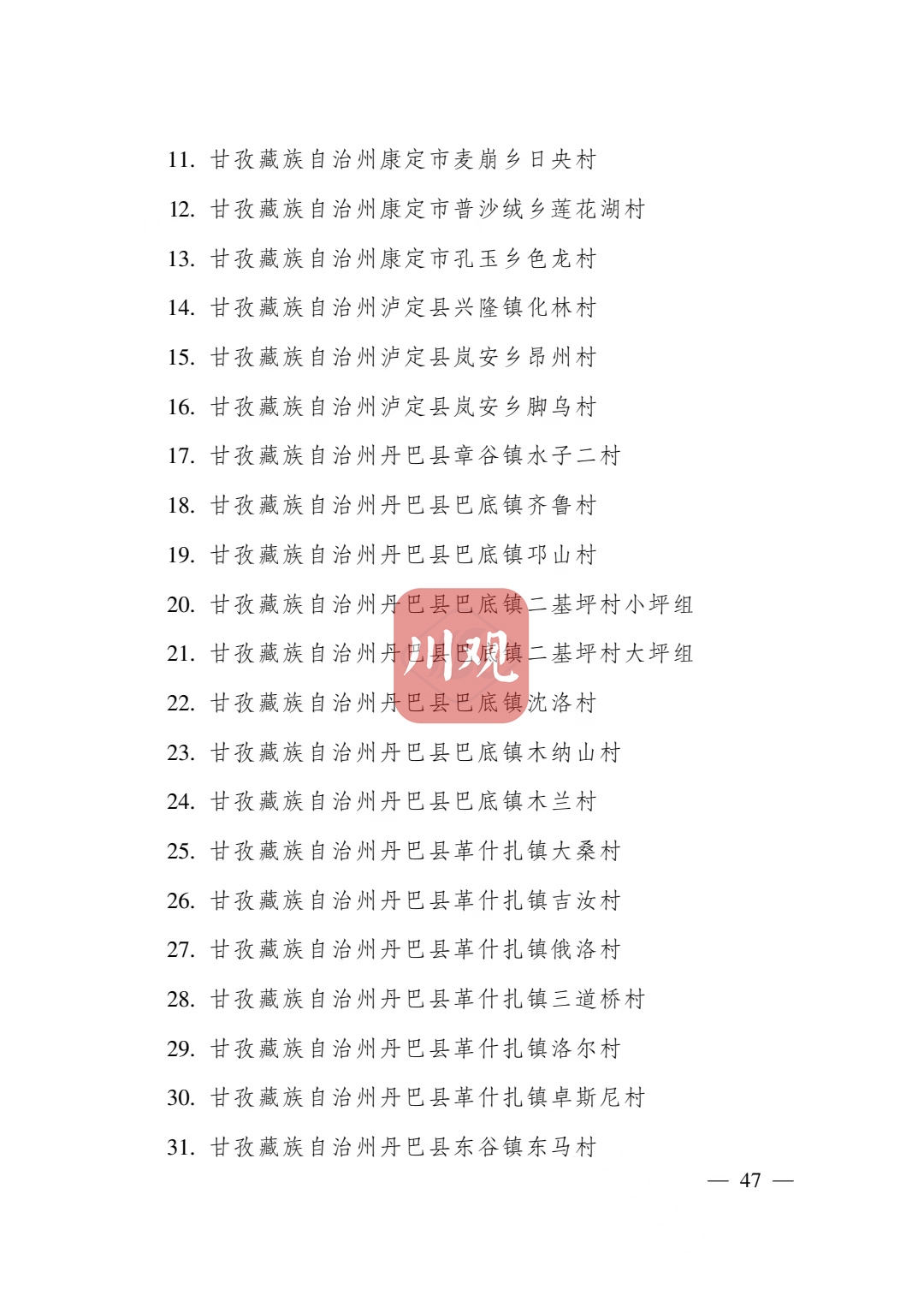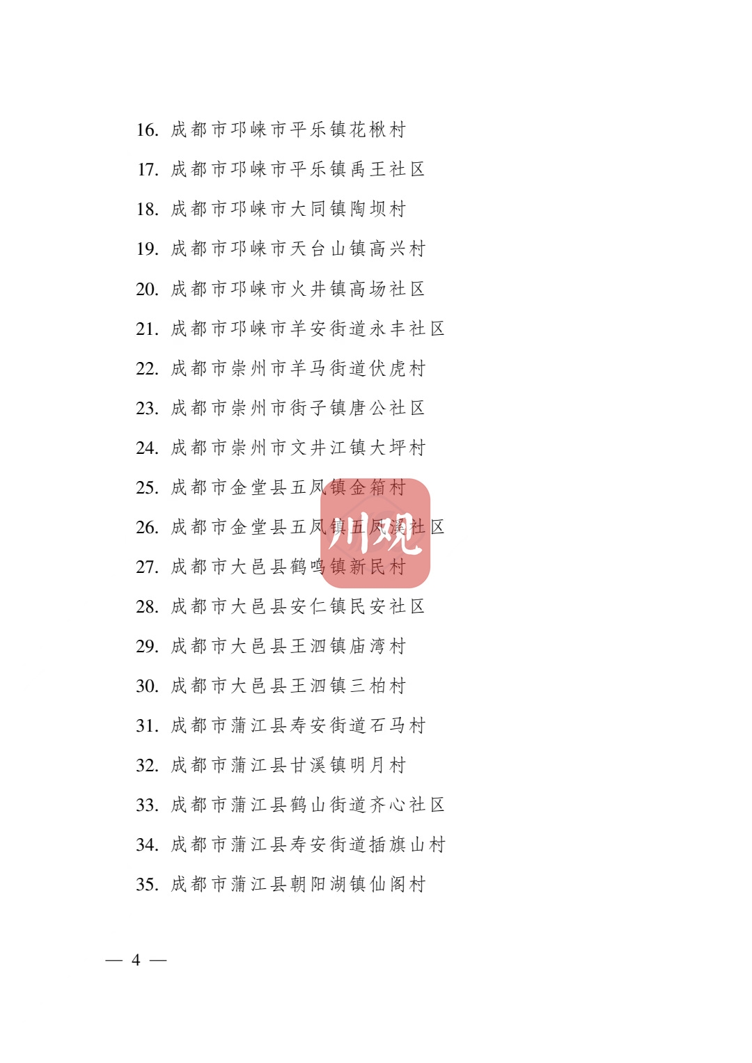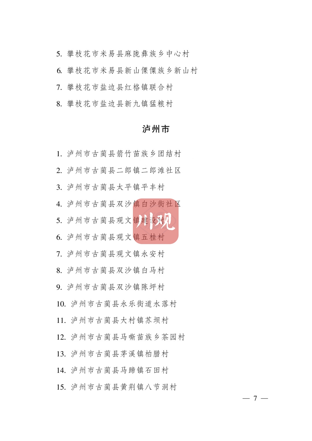 根据《四川省传统村落保护条例》,经各地申报、专家审查并向社会公示,省政府决定将成都市青白江区姚渡镇光明村等1165个村落列入四川传统村落名录,现予公布。