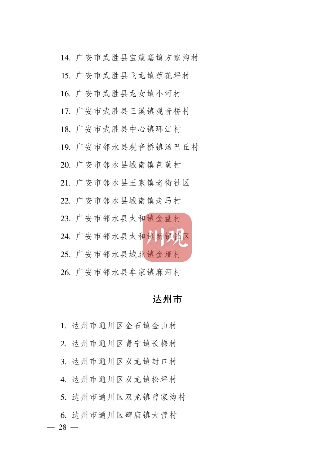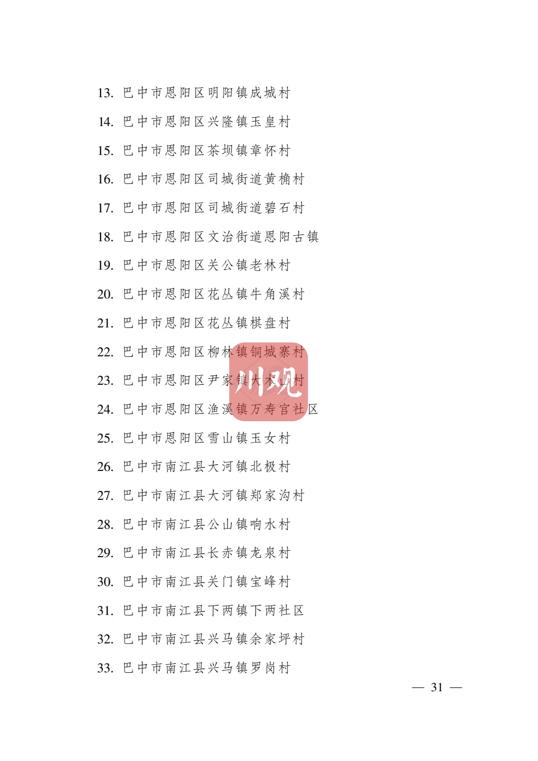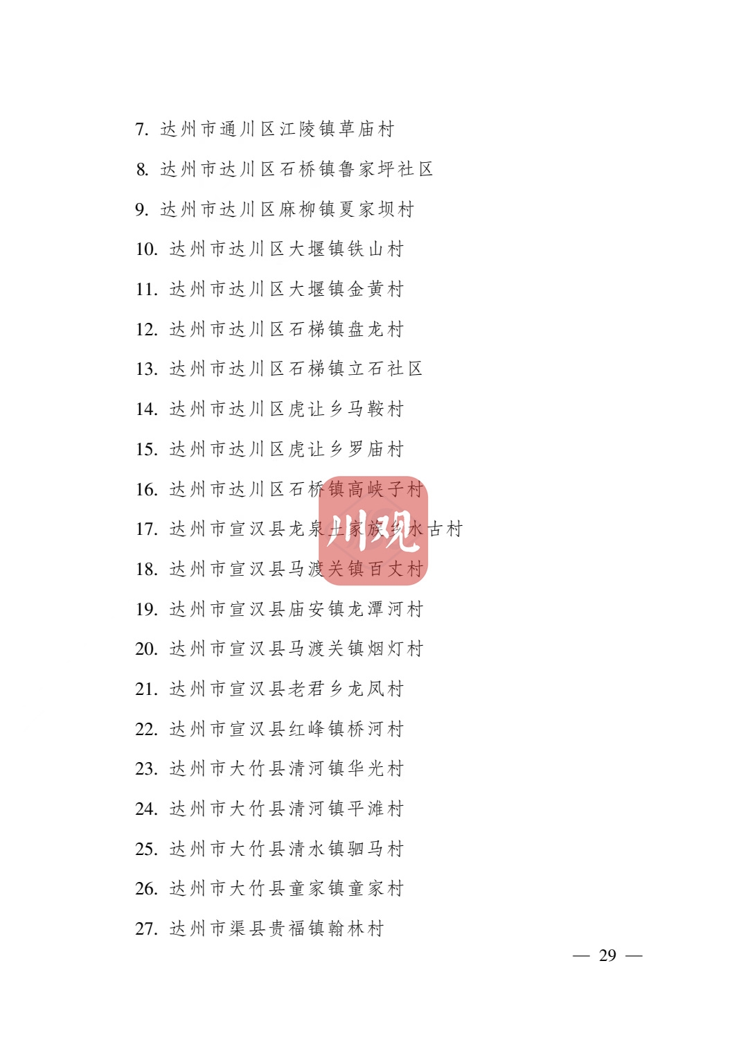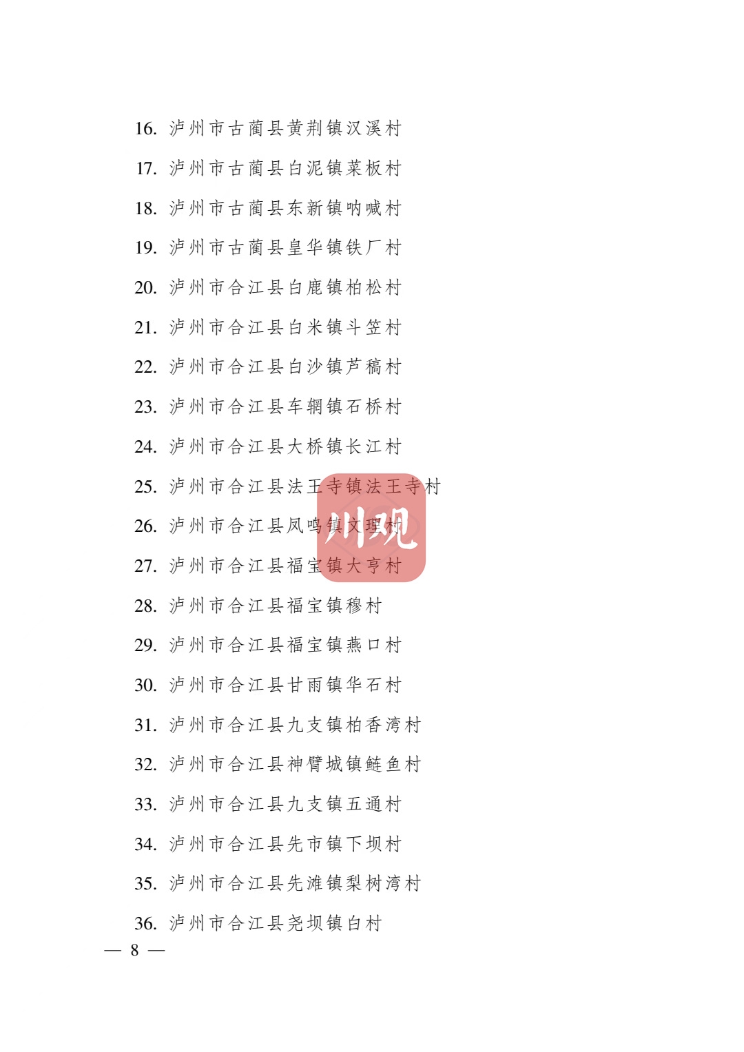 根据《四川省传统村落保护条例》,经各地申报、专家审查并向社会公示,省政府决定将成都市青白江区姚渡镇光明村等1165个村落列入四川传统村落名录,现予公布。